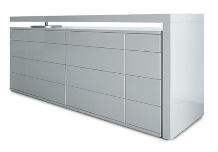 - niedrige, asymmetrische Kommode, rechts oder links, mit 4 Schubladen